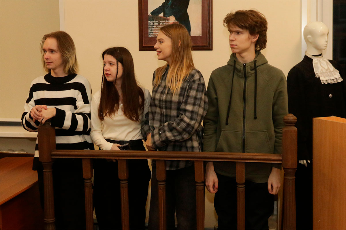 Роли судьи, государственного обвинителя, защитника, подсудимого, присяжных заседателей, свидетелей защиты и обвинения, судебного пристава, потерпевшего с успехом исполнили студенты Саид Джакаев, Александра Мымрикова, Анна Клишина, Тимофей Гончаров, Ульяна Аверина, Анастасия Гузеева, Иван Ларькин, Савелий Поляков и др.
