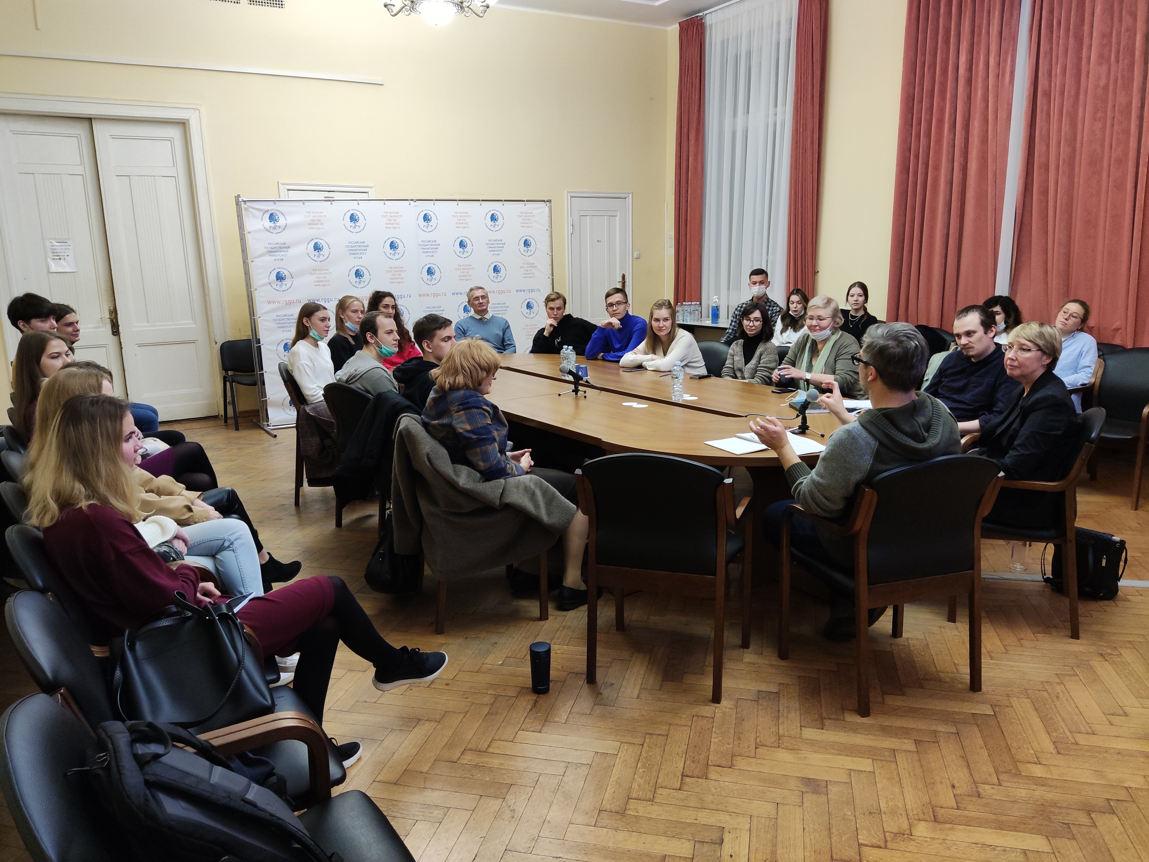 В рамках заседания спикер вместе с присутствующими преподавателями, студентами, магистрантами и аспирантами РГГУ обсудил актуальную социально-политическую повестку в США. Дискуссия оказалась оживленной, и в конце мероприятия Майкл уже сам задавал вопросы: