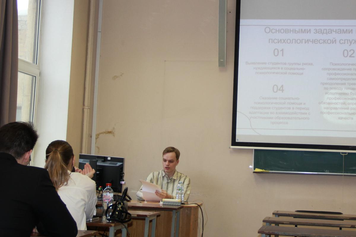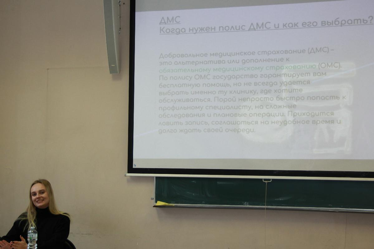 Особенности оказания медицинской помощи студентам ВУЗов стали темой выступления Александры Тимофеевны Гусар, студентки 4 курса 2 гражданско-правовой группы.