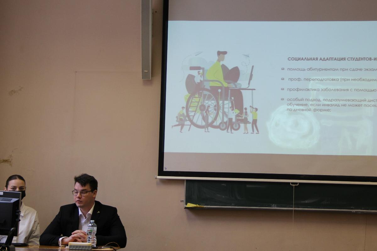 Виды социальной поддержки студентов с инвалидностью в диалоге на равных осветили Дунаевская Кристина Евгеньевна и Песков Максим Максимович, студенты 4 курса 1 гражданско-правовой группы.