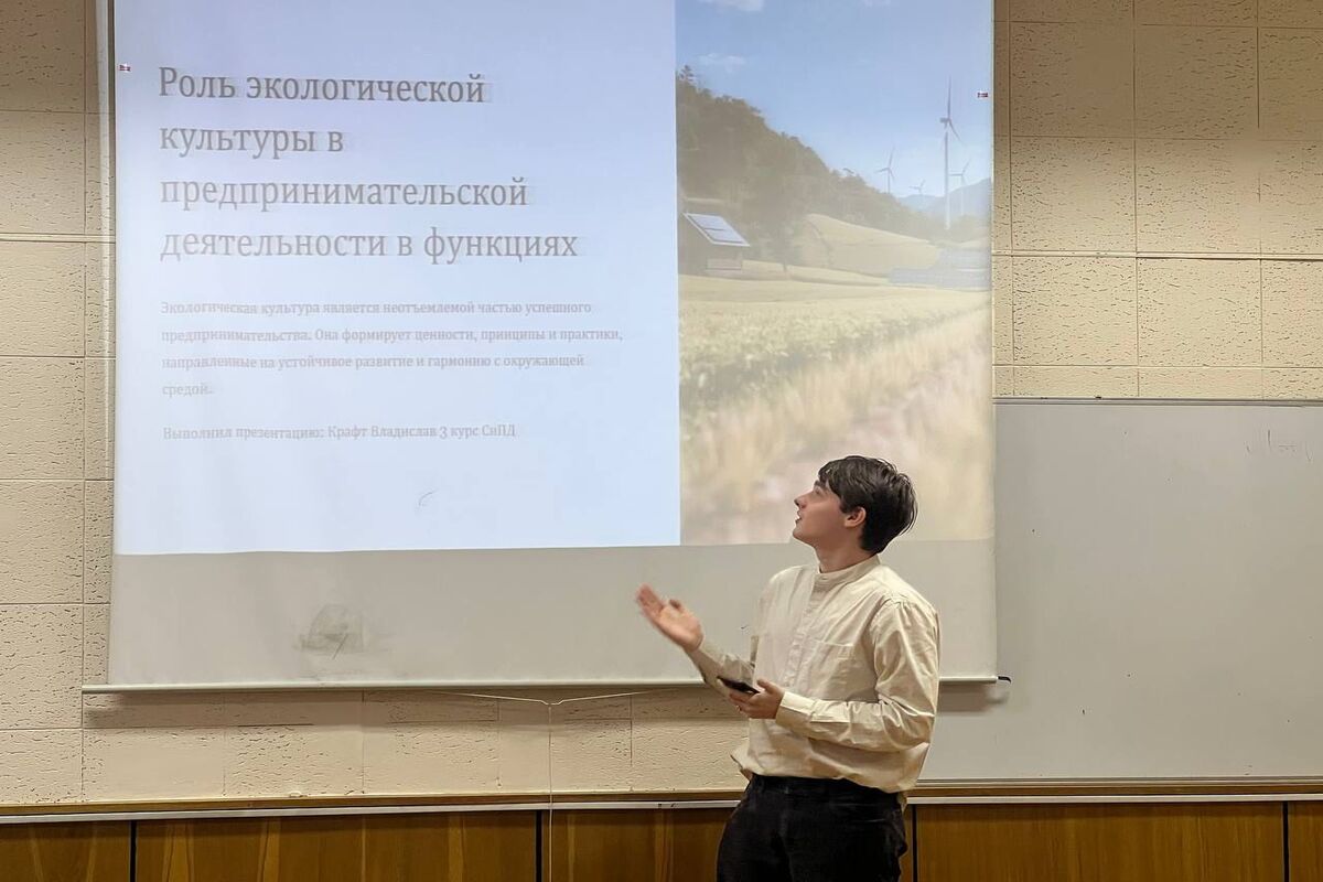 28 декабря 2024 года для магистрантов, бакалавров юридического факультета, обучающихся предпринимательского класса МОУ «Лингвистическая школа» г. Люберцы в целях повышения экологической культуры и навыков правового воспитания, доцентами кафедры предпринимательского права Балашовым Евгением Владимировичем и Шороховой Александрой Андреевной был проведен круглый стол по развитию и внедрению экологической культуры в деятельность субъектов предпринимательства.