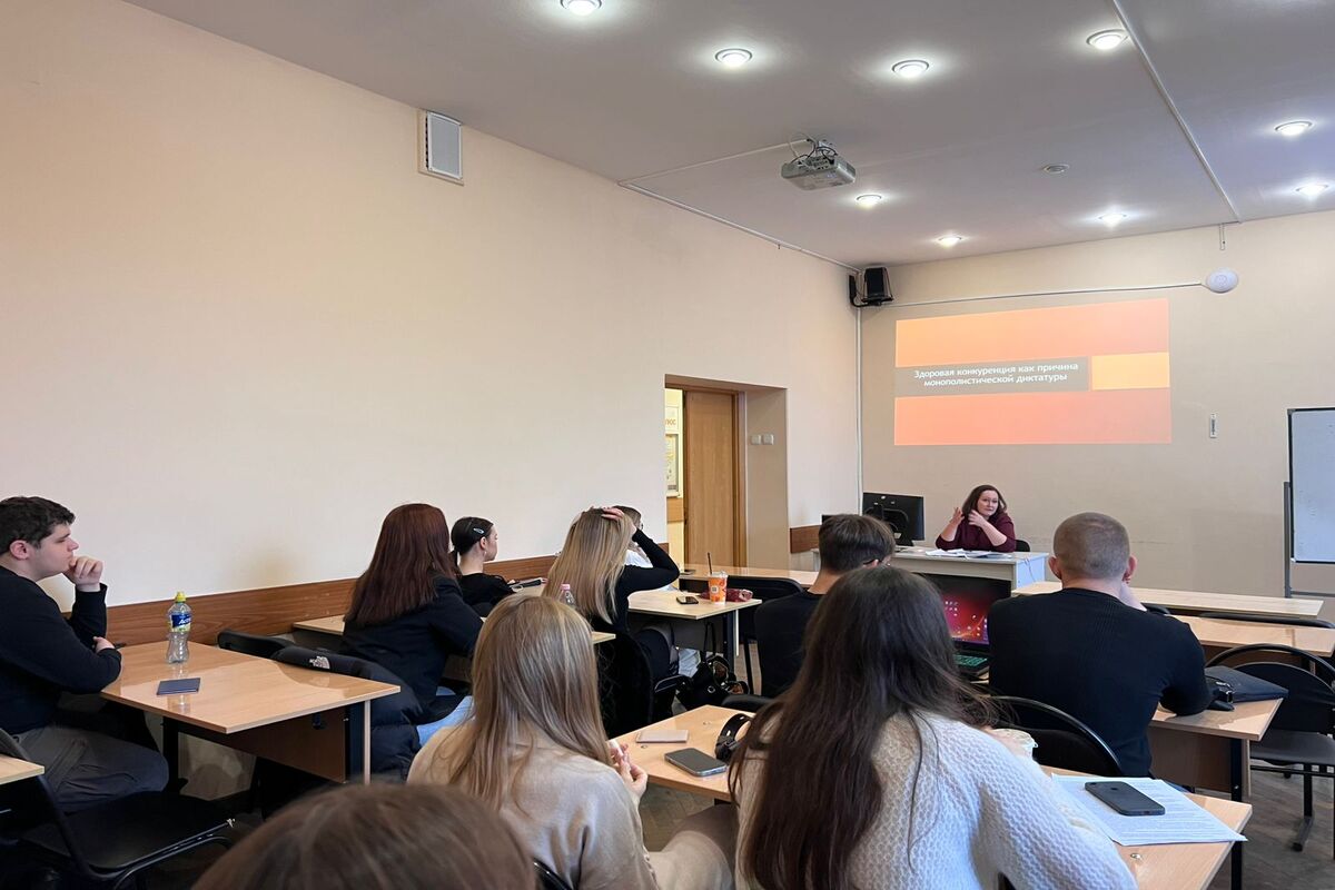 17 декабря 2024 года к.ю.н., доцентом кафедры финансового права П.М. Бабуриной была проведена интерактивная игра «Здоровая конкуренция как причина монополистической диктатуры». В мероприятии приняли участие студенты 2 курса юридического факультета.