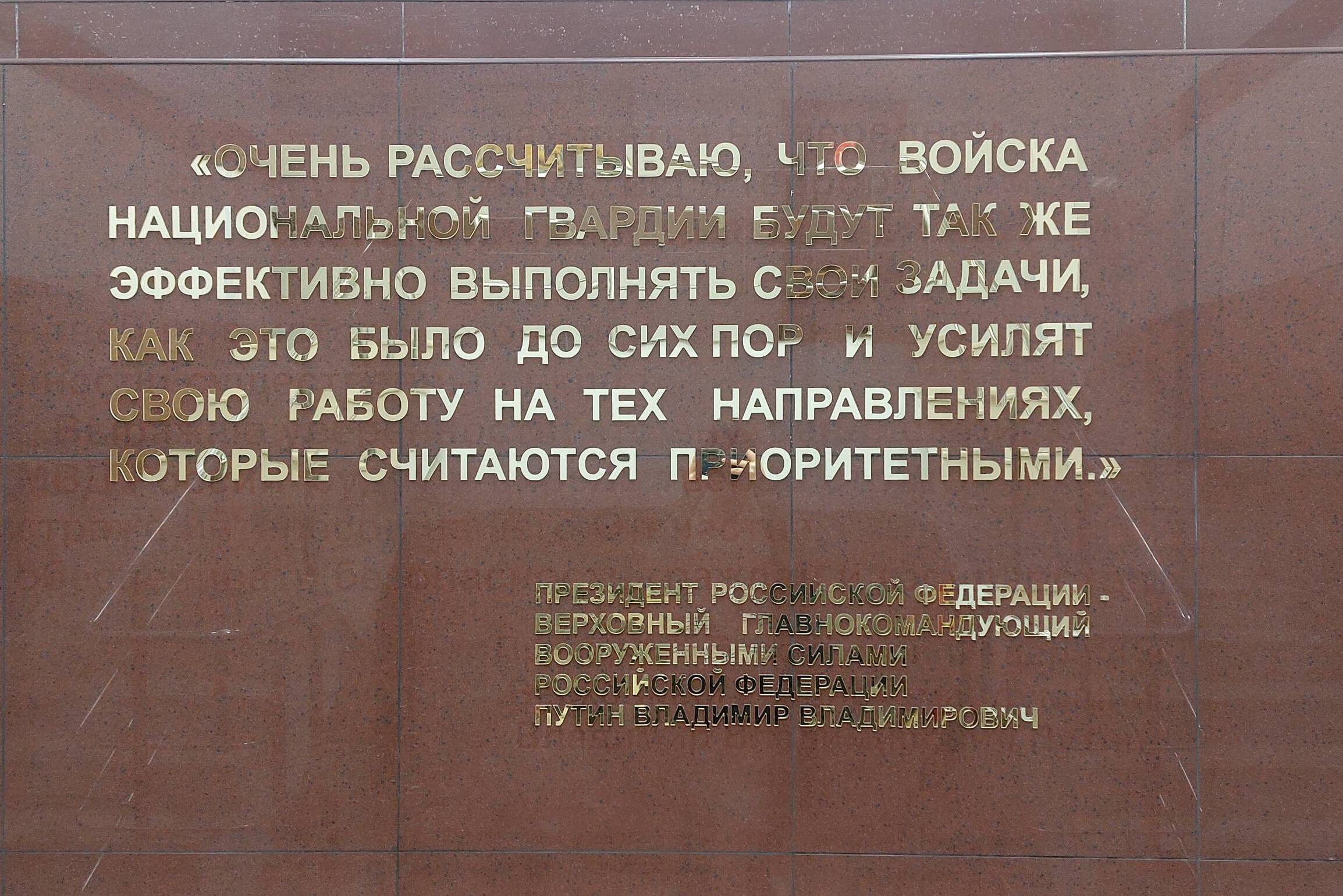 Была представлена история развития Войск Национальной Гвардии Российской Федерации: от ВЧК, с 1919 года – войска внутренней охраны (ВОХР), в 1920 году – войска внутренней службы (ВНУС), в 1922 году – войска ГПУ, с 1923 года – войска ОГПУ, с 1934 года – внутренняя охрана НКВД, а с 1937 года – внутренние войска НКВД СССР, внутренние войска МВД СССР, с 2016 года - Войска Национальной Гвардии Российской Федерации.