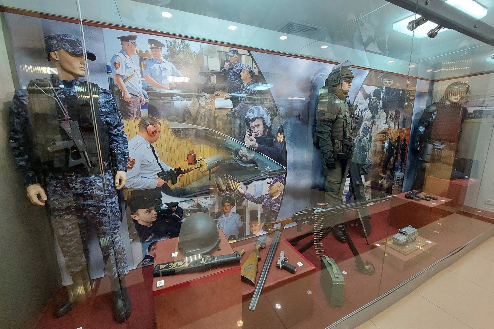 В начале мероприятия сотрудники музея рассказали об истории возникновения данного музея, кто был инициатором его создания и подписал указ, какие задачи и цели стоят перед ним и какие экспозиции находятся внутри. Количество музейных экспонатов основного фонда - 7 451 единица, научно-вспомогательного фонда 21 519 единиц. Наиболее ценными предметами являются репродукция портрета графа Е.Ф. Комаровского, карманный револьвер «Бульдог», нож «Наваха» с гладкоствольным пистолетом XIX века, пистолет Маузера в деревянной кобуре В.С. Кищука с дарственной пластиной, шашка Е.А. Аксенова, участника борьбы с бандитизмом в 1920-1922 гг., с дарственными пластинами, пистолет-пулемет «БОР3С» с магазином, пушка полковая образца 1927 года. Среди экспонатов особо выделяется чучело розыскной собаки Урал, с помощью которой было задержано более ста преступников.