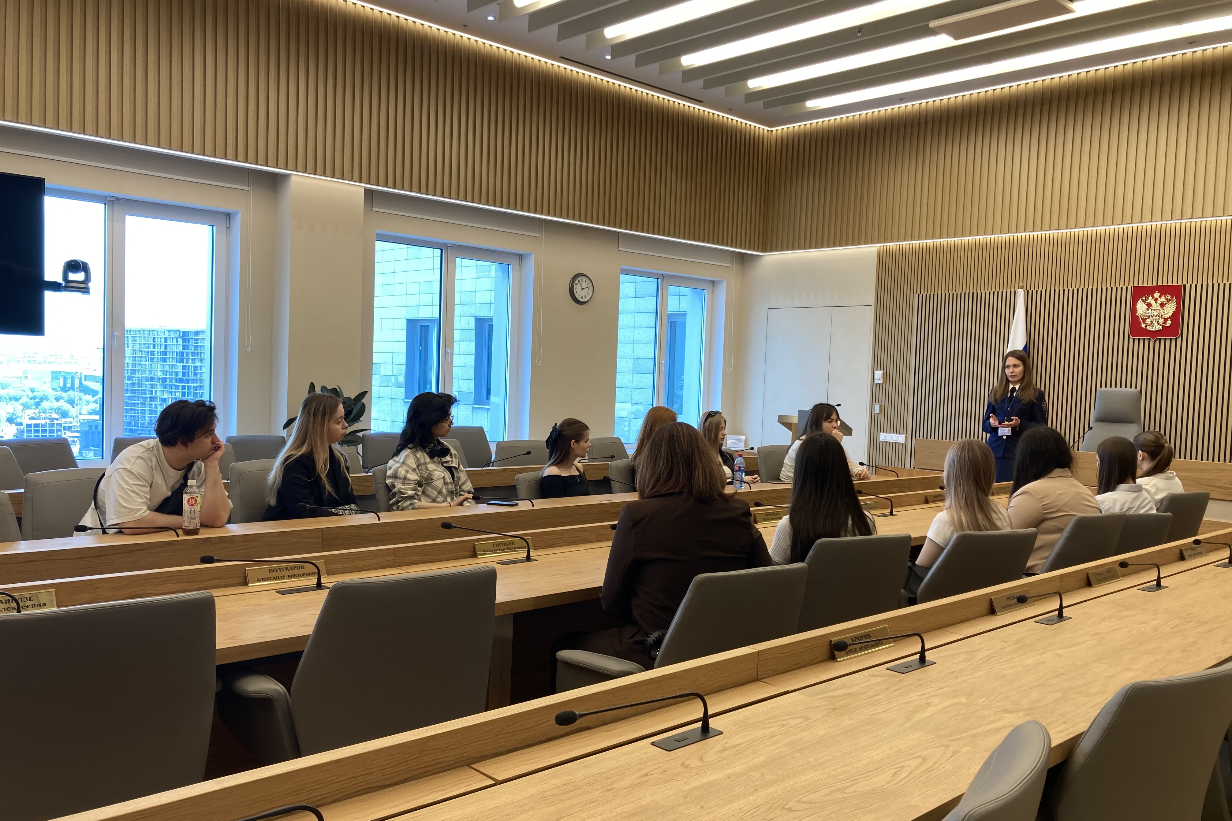 За время экскурсии в суде студенты стали слушателями ряда судебных заседаний по банкротству, по спорам, возникающим из корпоративных правоотношений, присутствовали при рассмотрении спора, связанного с регулированием правоотношений в условиях санкций и другим категориям дел.