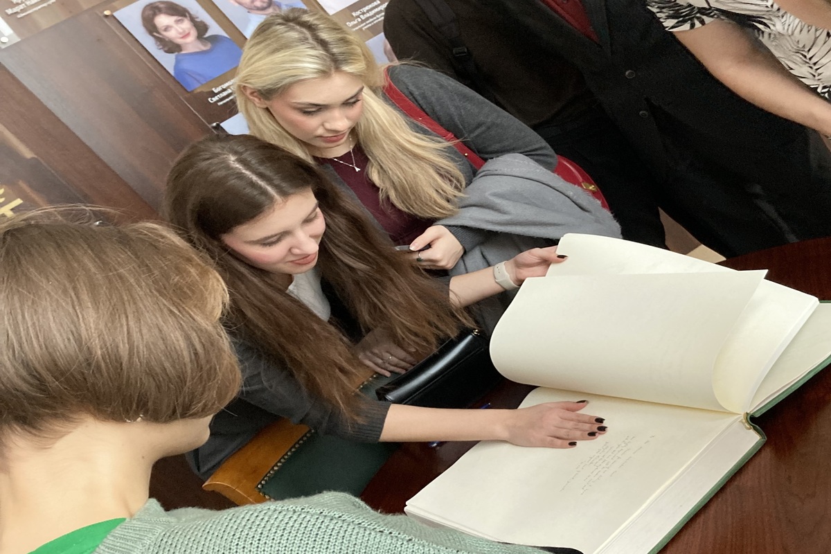 Наши студенты посетили также зал заседаний Президиума Арбитражного суда г. Москвы, музей истории суда. В Музее ребята ознакомились с содержанием Книги почетных гостей с пожеланиями на иностранных языках, оставленными делегациям из разных стран, узнали в чем заключается отличие мужской мантии от женской, смогли рассмотреть миниатюрную копию здания Арбитражного суда г. Москвы, изготовленную одним из секретарей судебных заседаний, а также узнали, что в ноябре 2025 год Арбитражный суд г. Москвы будет отмечать 90-летний юбилей.