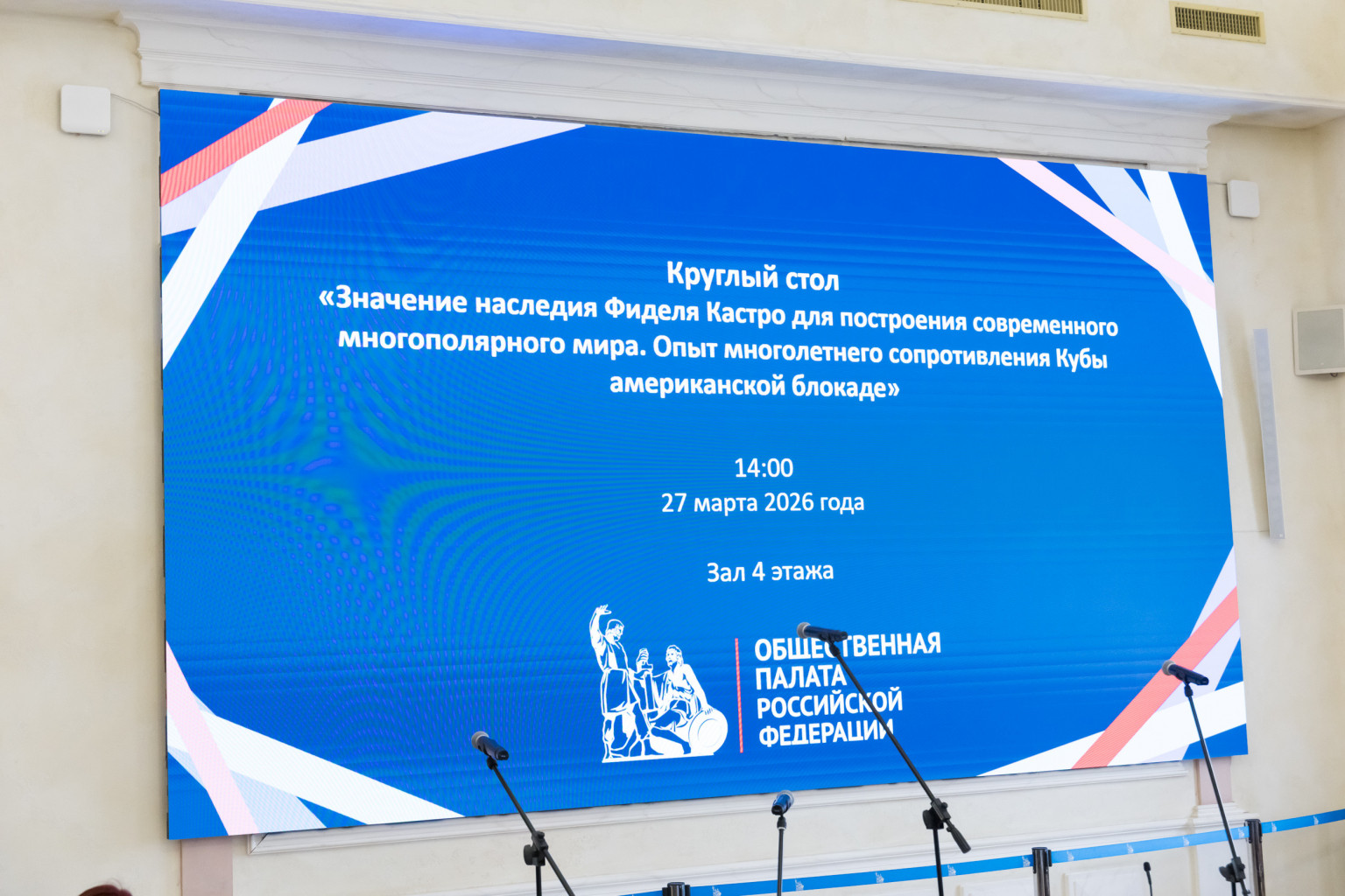 Общественная палата Российской Федерации, Посольство Кубы в РФ, Российский Государственный Гуманитарный университет, МГУ им. М. В. Ломоносова, МИД РФ, представители общественных организаций отметили эту дату, собравшись 27 марта в Общественной палате.