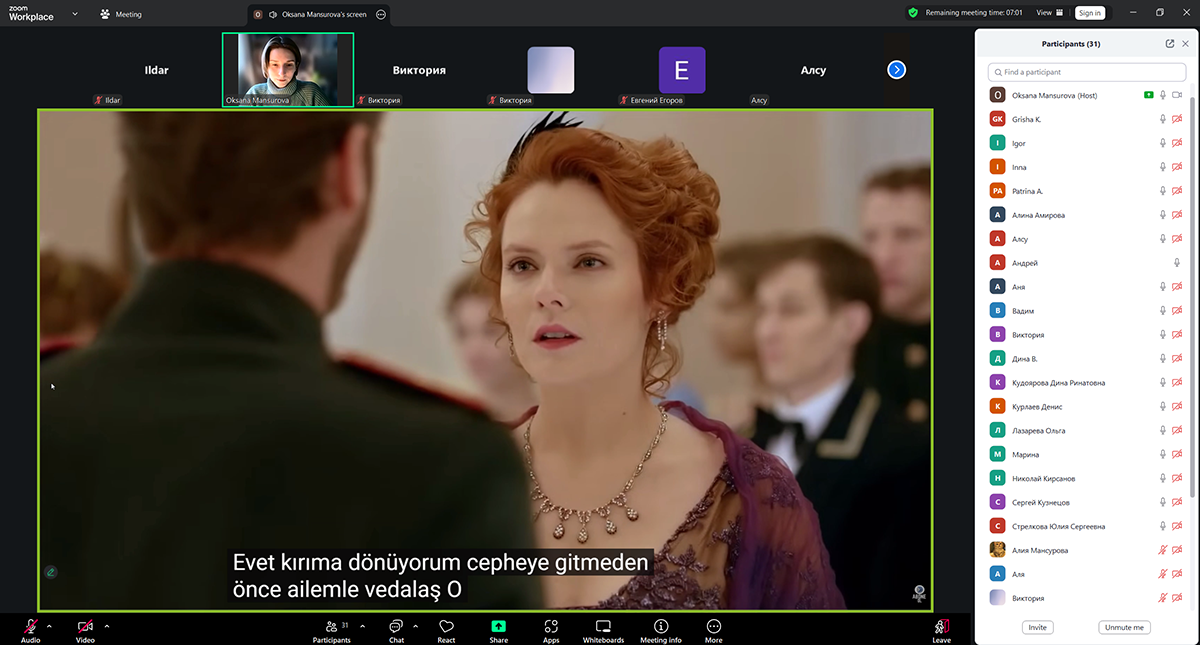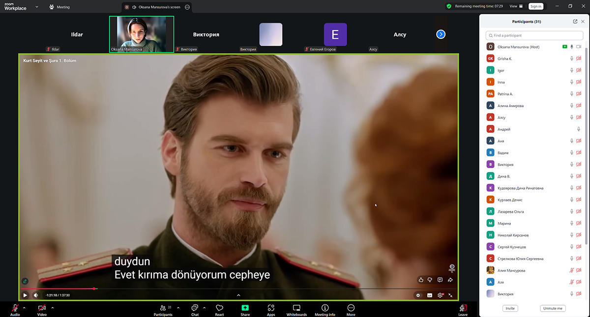4 марта 2026 года студенты, выпускники и гости Российского государственного гуманитарного университета говорили о турецком кинематографе и русской истории. В центре внимания онлайн-встречи оказался сериал «Курт Сеит и Александра» — история любви на фоне краха старого мира, для съёмок которой в Мраморном дворце задействовали настоящий оркестр и более трёхсот человек массовки.