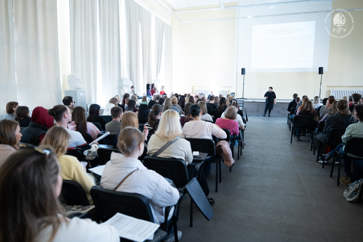 Параллельно с работой информационных стендов в аудиториях Российского государственного гуманитарного университета проходили лекции-знакомства с факультетами и направлениями подготовки. Можно было выбрать интересующий факультет, пройти в указанную аудиторию, послушать, что предлагает то или иное направление, а также задать свои вопросы.