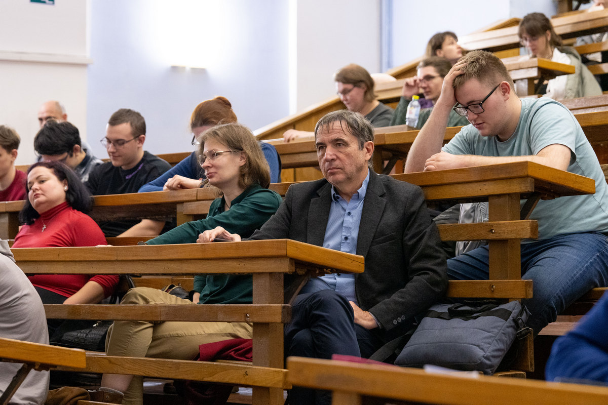 «Очень рад, что мы собрались сегодня. Вы можете задать вопросы присутствующим здесь академикам — это действительно выдающиеся люди, определяющие развитие гуманитарной науки», — подчеркнул ценность прямого общения студентов с ведущими учёными РАН ректор РГГУ Андрей Логинов.