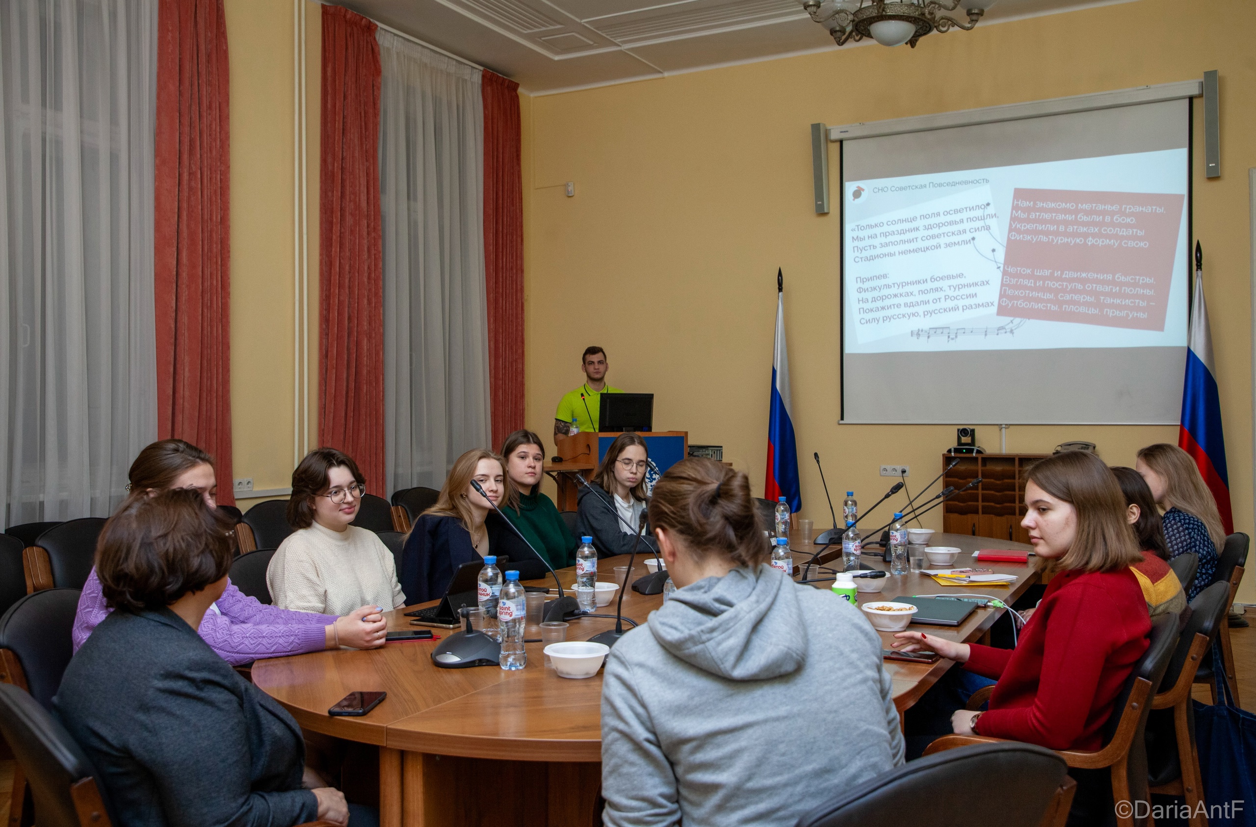 Особо интересным показался вопрос о репрезентации советских спортсменов в кинематографе. В завершении мероприятия Елена Владимировна Барышева предложила организовать круглый стол, посвящённый визуальной истории. Её идею активно поддержали студенты, многие из которых занимаются или затрагивают в своей научной деятельности художественные фильмы.