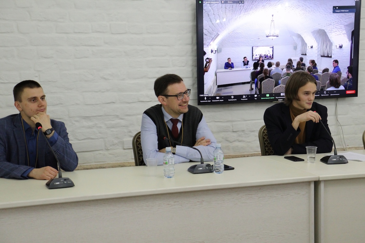 Доклад вызвал оживленную дискуссию, в ходе которой выяснилось, что на мероприятии присутствует особенный гость – научный сотрудник Тверского путевого дворца – Александр Владимирович Крошников. Александр Владимирович приехал специально ради заседания из Твери, что стало приятным сюрпризом как для собравшихся, так и для организаторов. Александр Владимирович внес значительные дополнения в доклад Алексея, задал несколько вопросов, и что самое главное – пригласил студента в сам дворец на экскурсию.