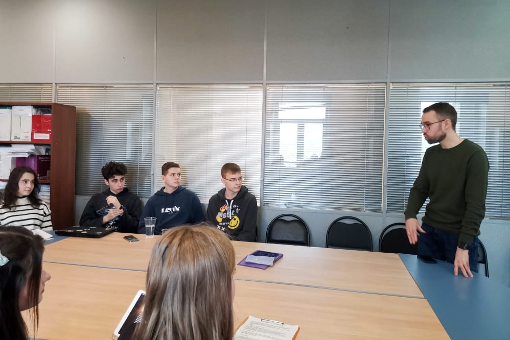 С приветственным словом выступил заместитель декана по работе со студентами факультета Павел Алексеевич Анисимов, который рассказал школьникам о факультете международных отношений, политологии и зарубежного регионоведения ИАИ РГГУ и подчеркнул важность сотрудничества нашего факультета и школы. Павел Алексеевич также выразил уверенность в том, что высокий уровень общей и языковой подготовки как студентов, так и учащихся школы им. Пабло Неруды позволит им наиболее полно окунуться в мир науки и иностранного языка.