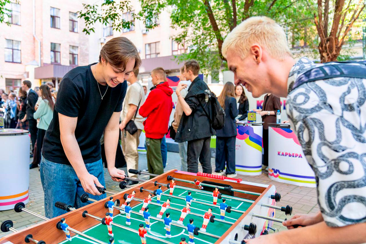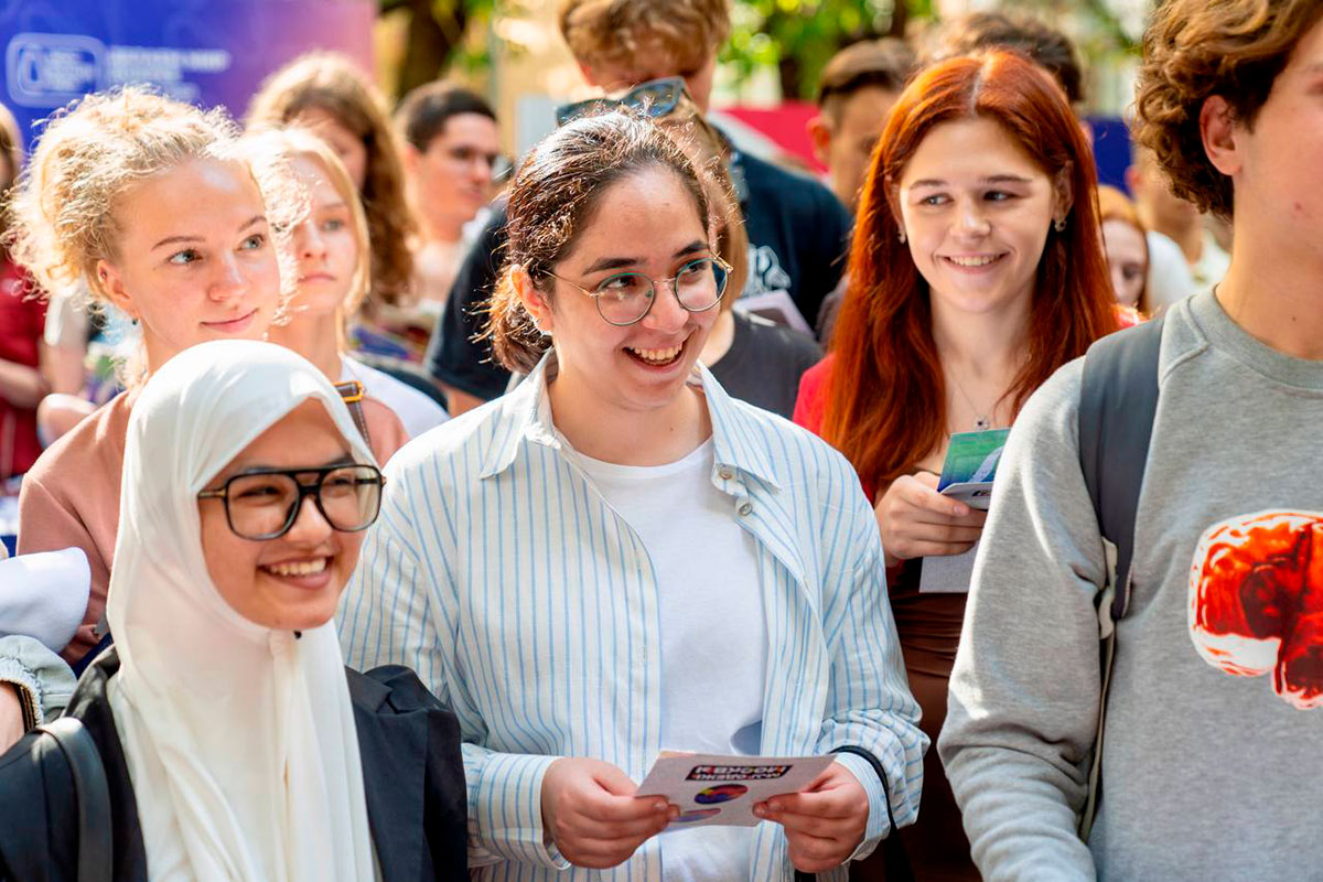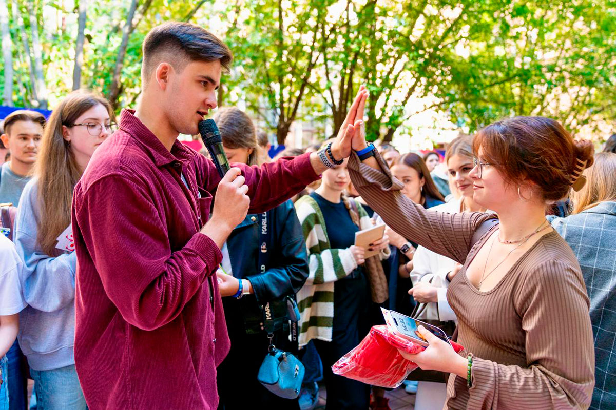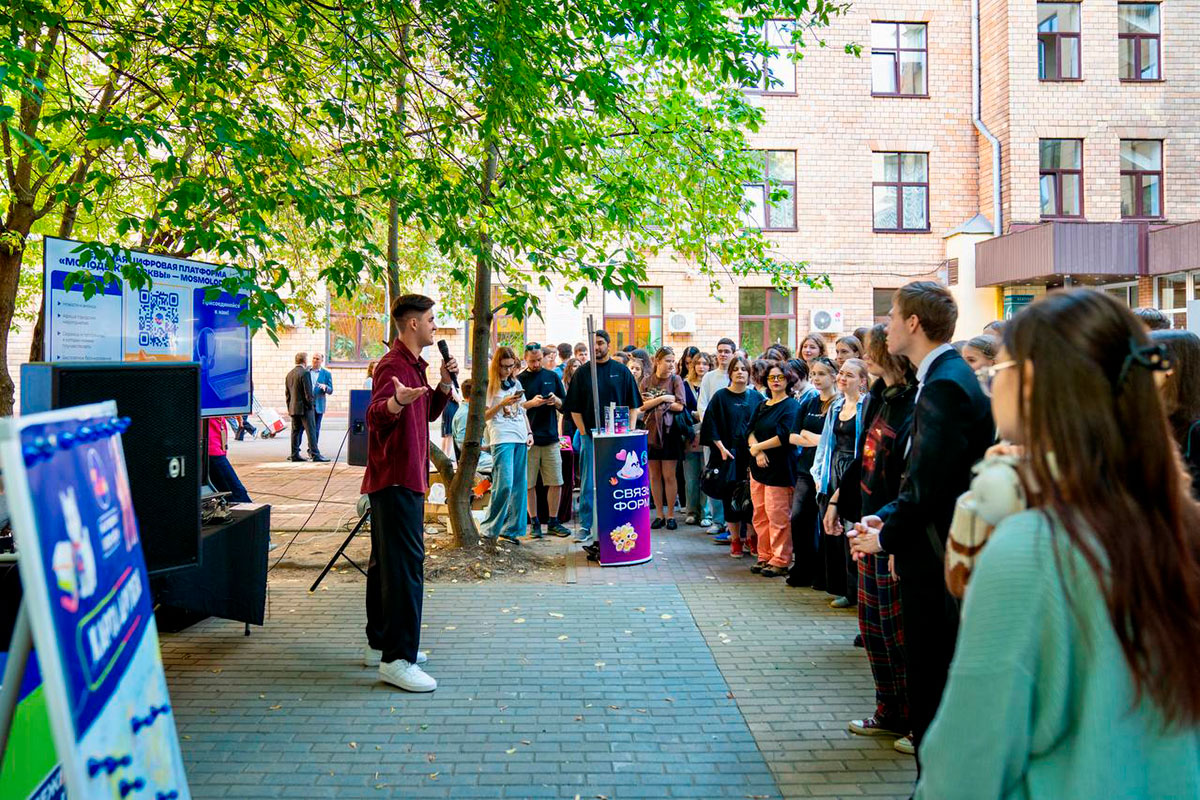 В учебных заведениях столицы начались дни проекта «Молодёжь Москвы» — традиционные ежегодные встречи команды со студентами. На них можно узнать больше о возможностях, которые предлагает молодым людям столица, образовательных программах, творческих конкурсах и городских событиях. Во внутреннем дворе РГГУ развернулся настоящий праздник: лотерея с памятными призами от «Молодёжи Москвы» и партнёров, настольные игры, весёлая музыка, интересное общение и вкусные угощения — всё для того, чтобы первокурсники смогли познакомиться друг с другом, погрузиться в активную студенческую жизнь с первых дней учёбы и реализовать свои идеи.