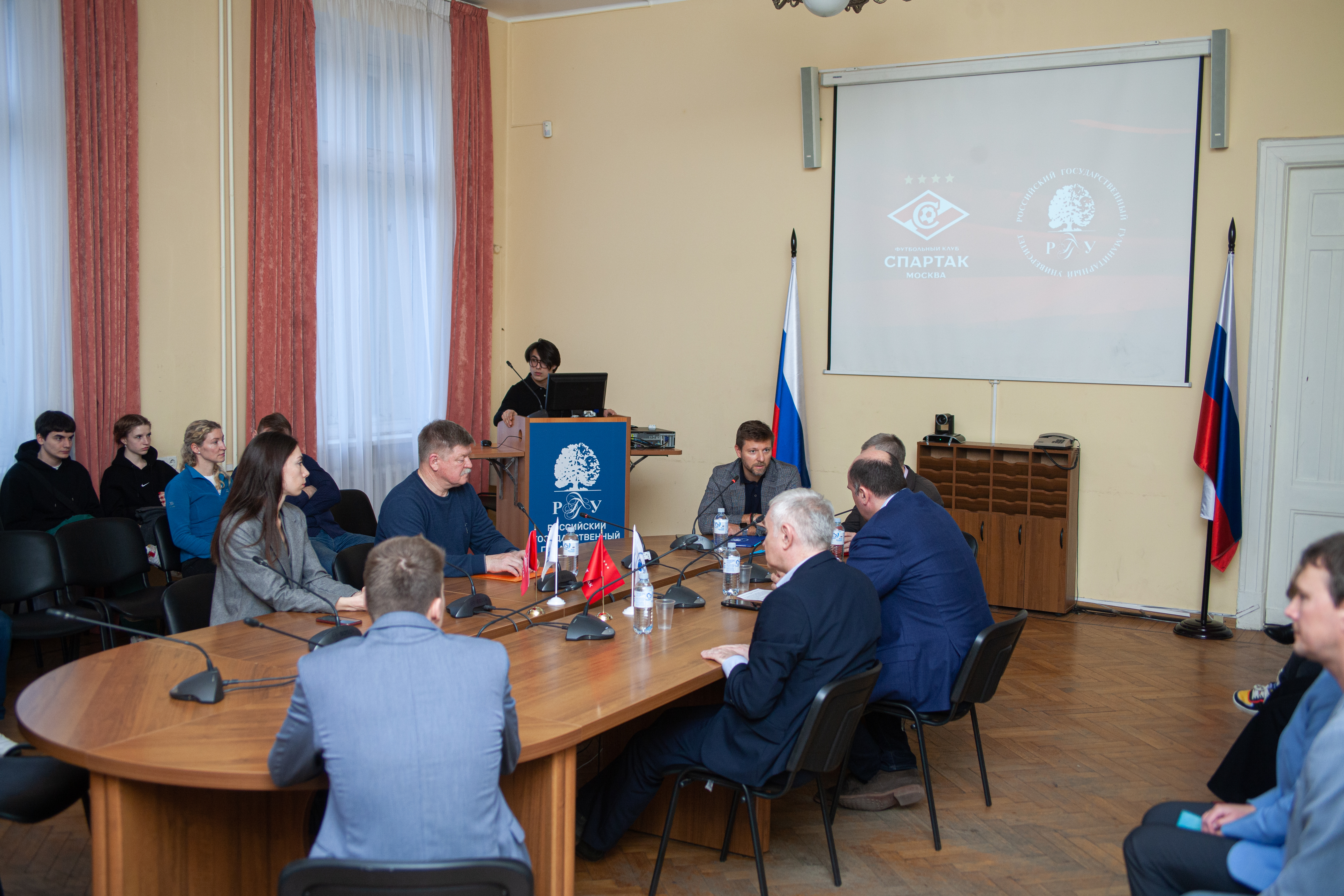 15 апреля в Российском государственном гуманитарном университете прошла встреча членов ректората нашего вуза с представителями руководства футбольного клуба «Спартак-Москва», в ходе которой было подписано соглашение о сотрудничестве.