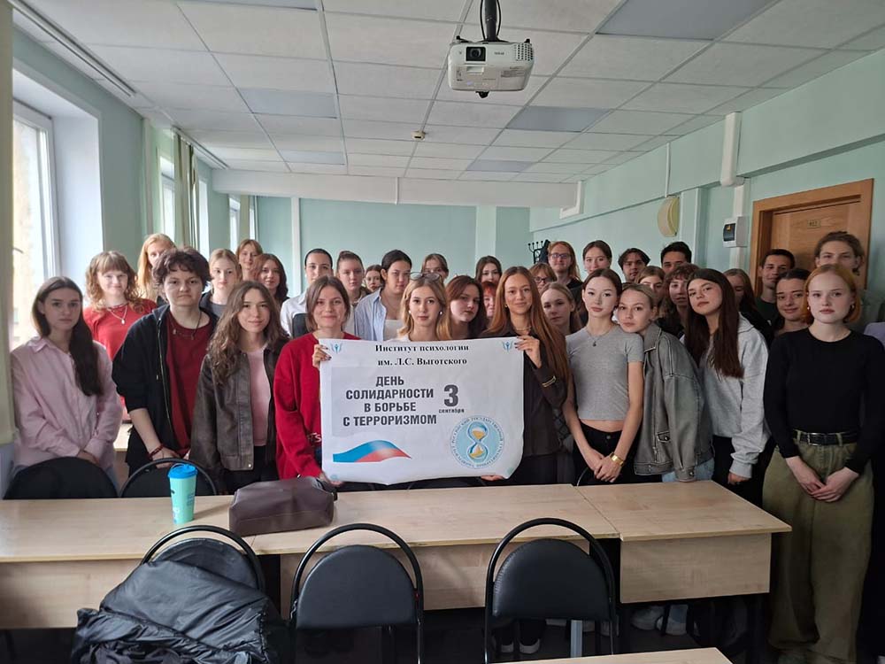 В Институте психологии им. Л. С. Выготского РГГУ 3 сентября провели занятие по профилактике проявлений экстремизма и терроризма в студенческой среде. Первокурсники приняли участие в дискуссии и высказали свои идеи о роли гражданского общества в противодействии идеологии террора, о том, какой вклад может внести молодёжь в борьбу с экстремизмом и терроризмом. Занятие подчеркнуло важность активной гражданской позиции каждого студента.