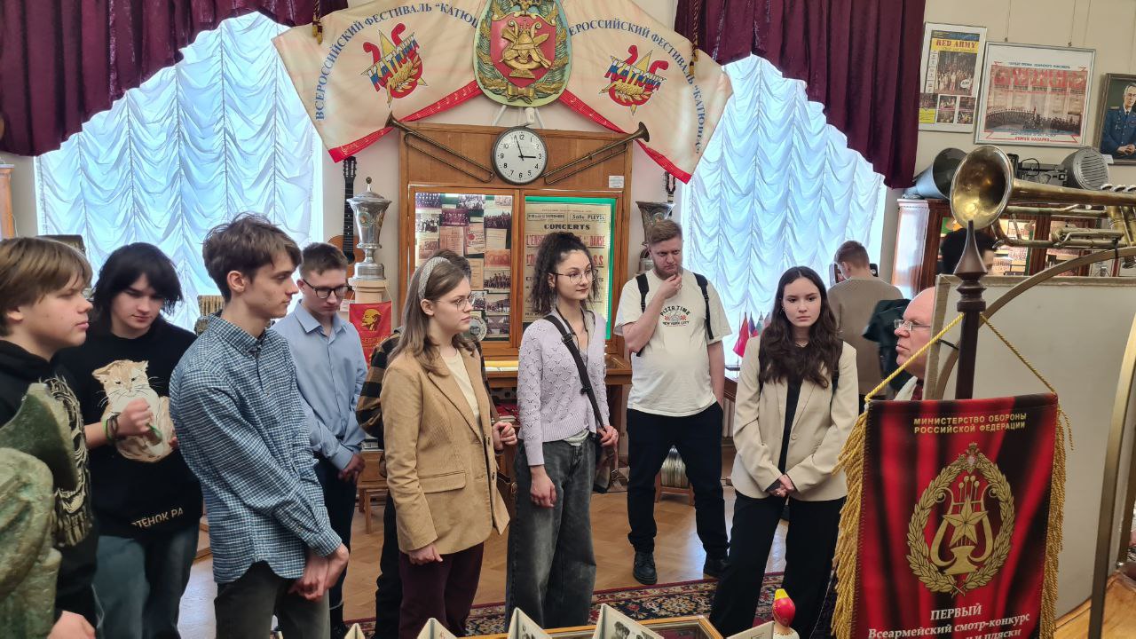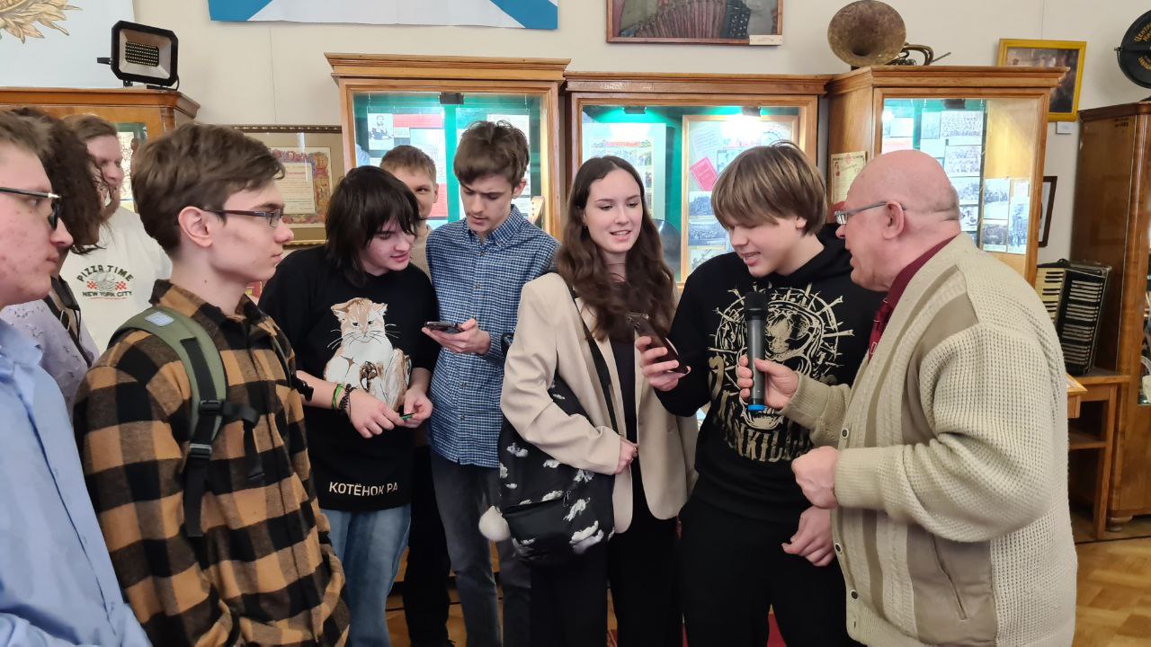 Экскурсию провел Владимир Борисович Храпков, который рассказал о значении, а также истории военной песни в годы Великой Отечественной войны. Ученики узнали о разных ансамблях, артистах и музыкальных инструментах, которые вдохновляли солдат.