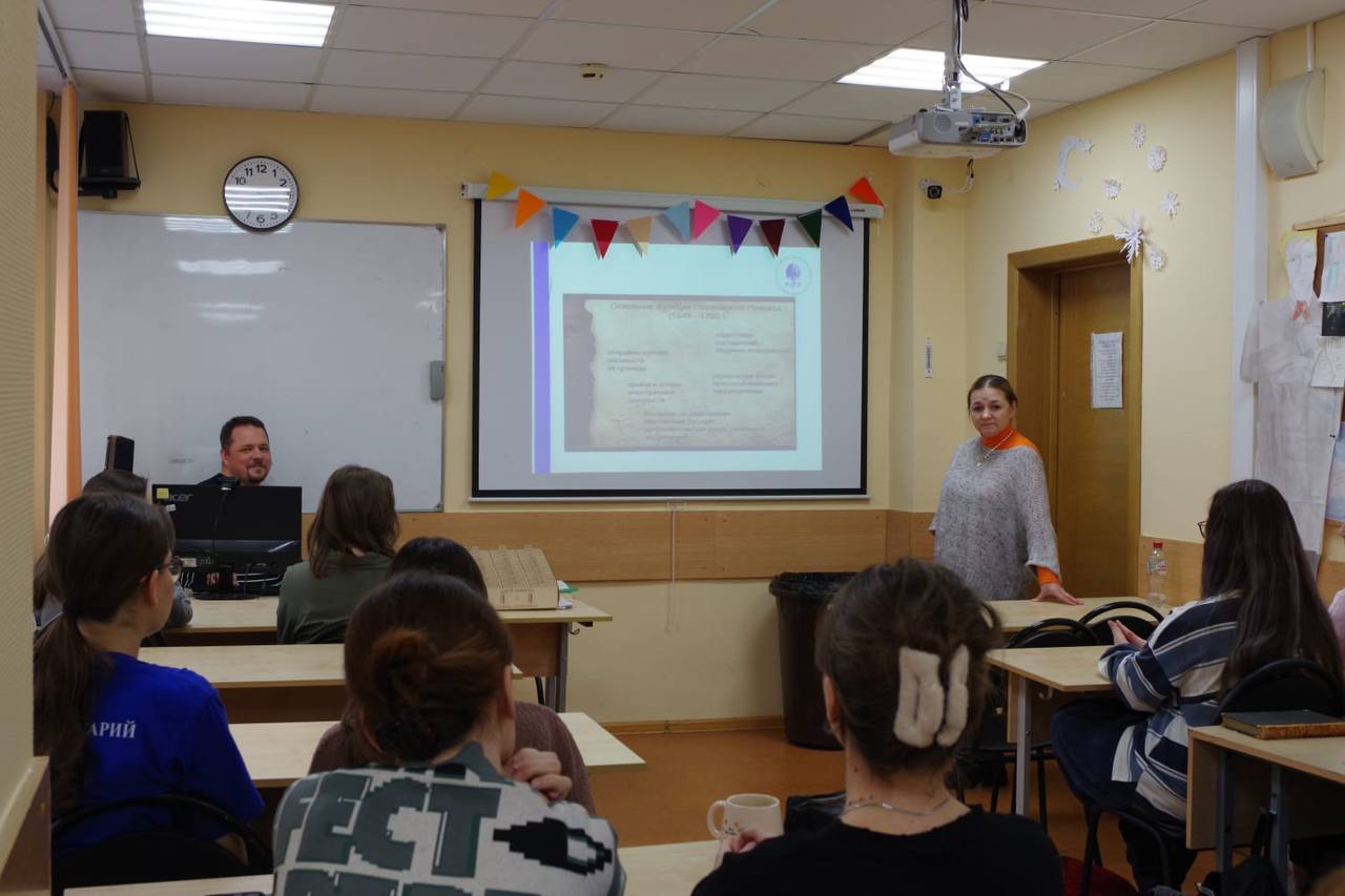 Андрей Петрович и Анна Валерьевна провели беседу о профессии переводчика в современном мире, рассказали об интересных фактах из истории профессии переводчика: кто были первые переводчики, что они переводили, как назывались, где и как жили переводчики в Европе и на Руси, где можно было получить профессию переводчика, а также коснулись новейших тенденций в переводческой деятельности.