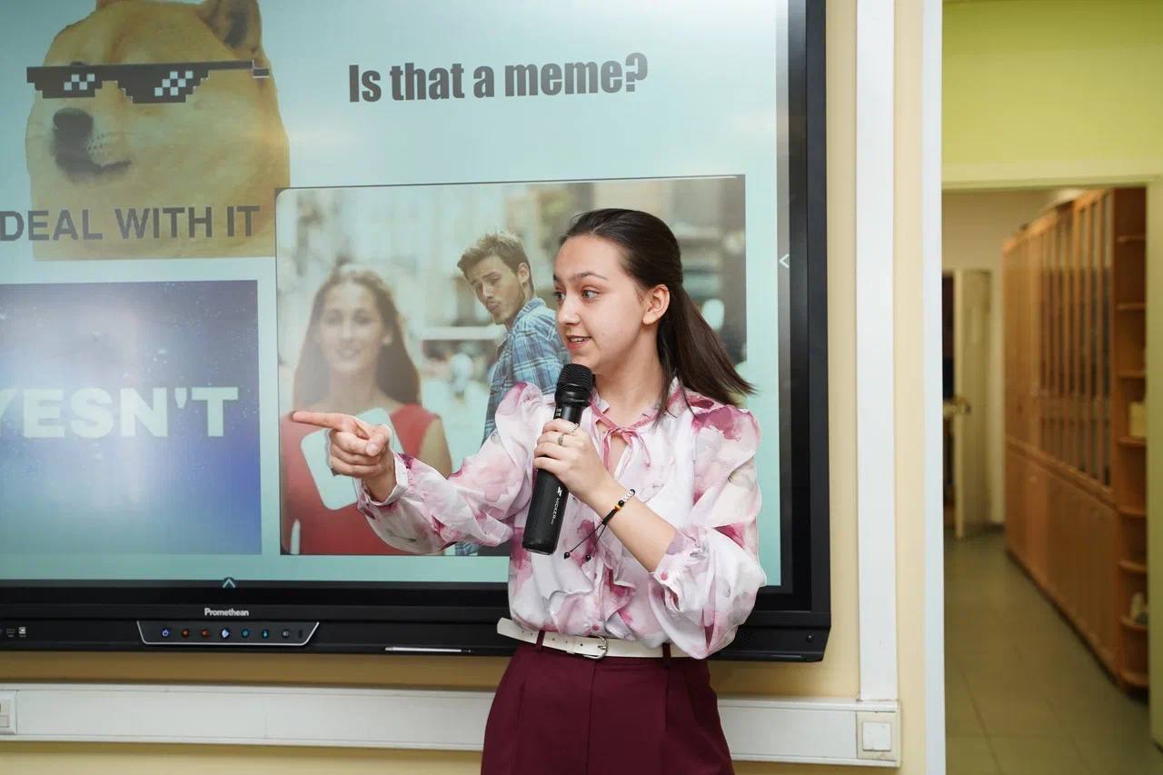 1 место – Алина Кайбышева, тема – «Memes: a new(ish) tool of communication»