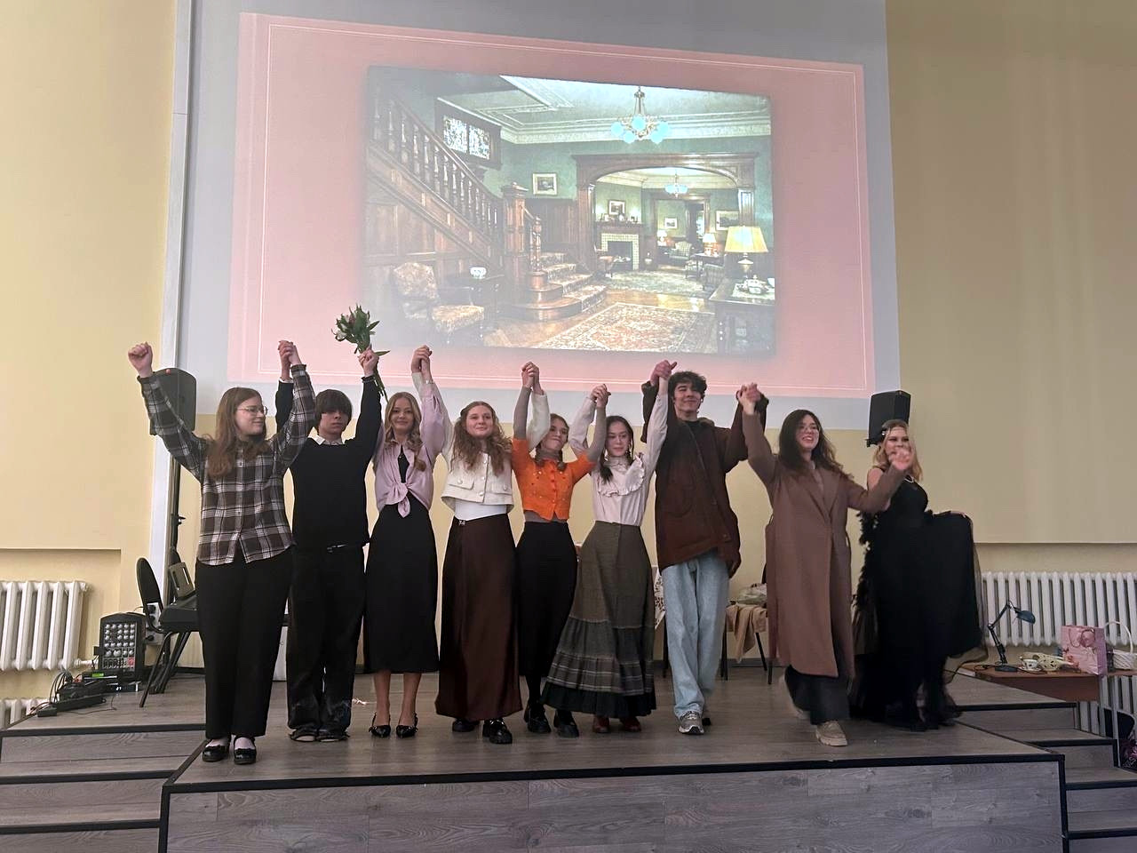 По традиции ученики 10-х классов подготовили творческие выступления на основе зарубежных литературных произведений и известных историй. В этом году зрители увидели следующие постановки: