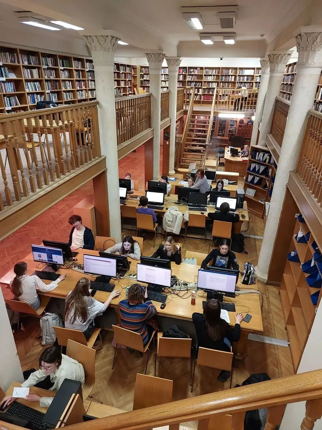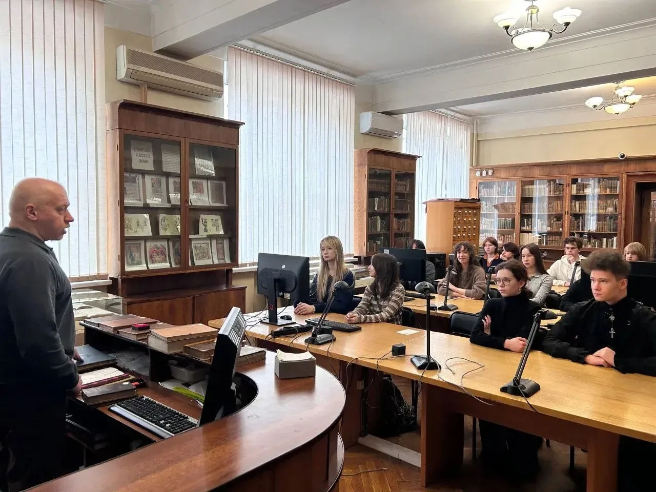 В ходе экскурсии учащиеся познакомились с фондами и возможностями библиотеки. Общий фонд насчитывает около 1 миллиона изданий, из которых более 20 000 находятся в открытом доступе на основной территории и около 5 000 — в библиотеке Историко-архивного института.